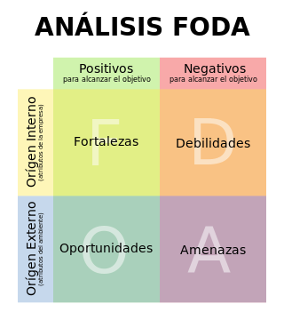 Es una exploración del entorno de la organización para identificar qué hay en la competencia, en el mercado y en la sociedad; se refiere a la planeación estratégica orientada por dos tipos de análisis: por un lado, el análisis ambiental, para verificar y estudiar las oportunidades que deben aprovecharse y las amenazas a neutralizar; por otro lado, el análisis organizacional, para descubrir y ahondar en las fortalezas y debilidades de la empresa.