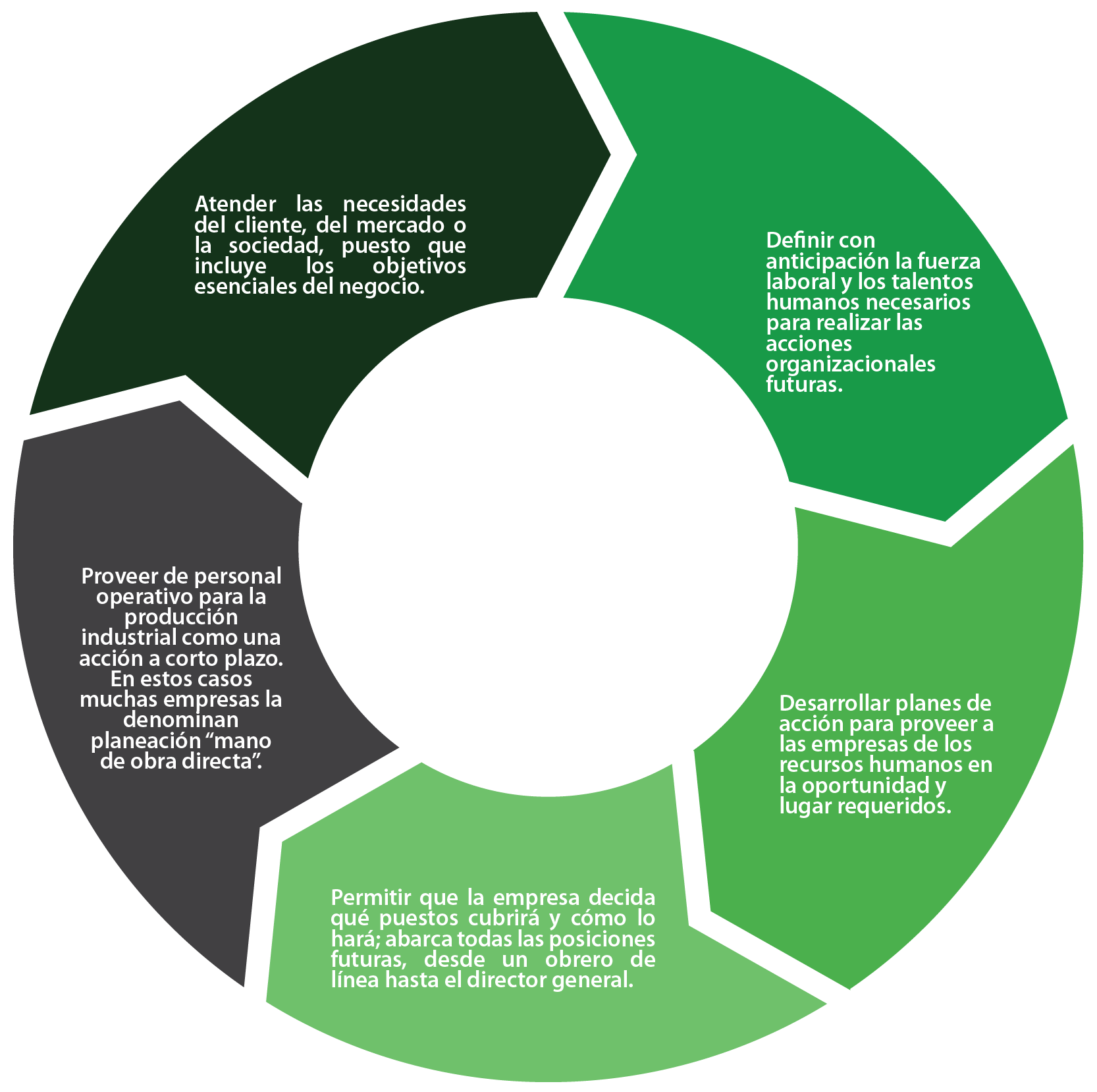 | “La planeación de recursos humanos (PRH; HRP por sus siglas en inglés) es el proceso de anticipar y hacer previsiones ante el ingreso de personas a una organización, su estancia en ella y su salida de la misma” (Bohlander, 2001, p. 51). |