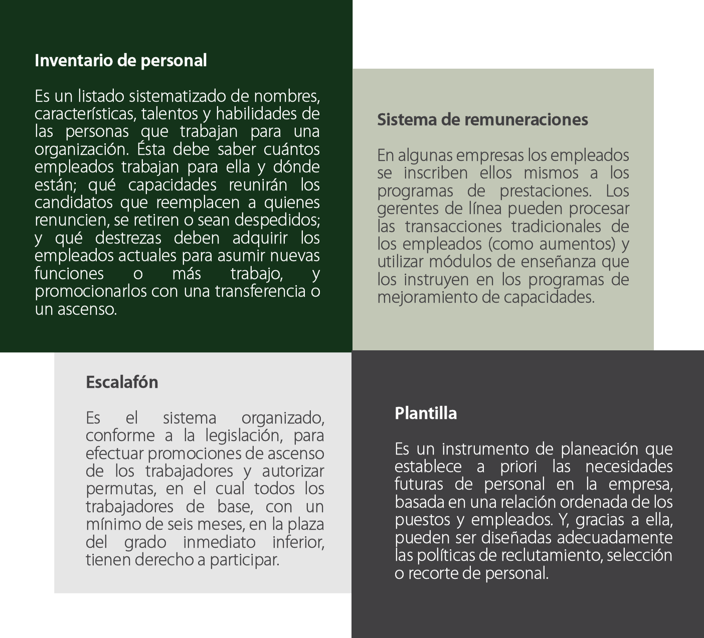 En lo que respecta al inventario de personal, cuando la organización decide hacerlo, debe determinar qué información contendrá; esta decisión es central, pues la lista de datos que se pueden codificar en los inventarios es casi interminable.