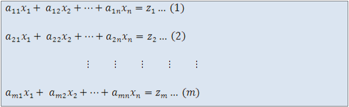 Donde 1, 2, 3,...m son las ecuaciones y x2,x2,...xn son las variables independientes de las ecuaciones.
