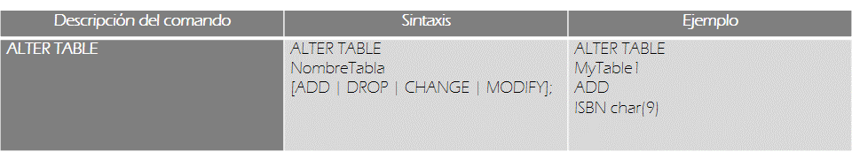 ALTER. Se utiliza para modificar objetos en una base de datos.