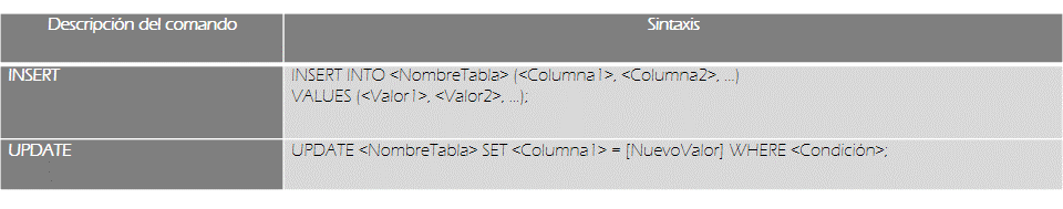 Como recordarás, las sentencias SQL incluidas en el DDL y el DML, utilizan comandos que permiten crear, modificar, actualizar o manipular ya sea los datos o los objetos de una base de datos.