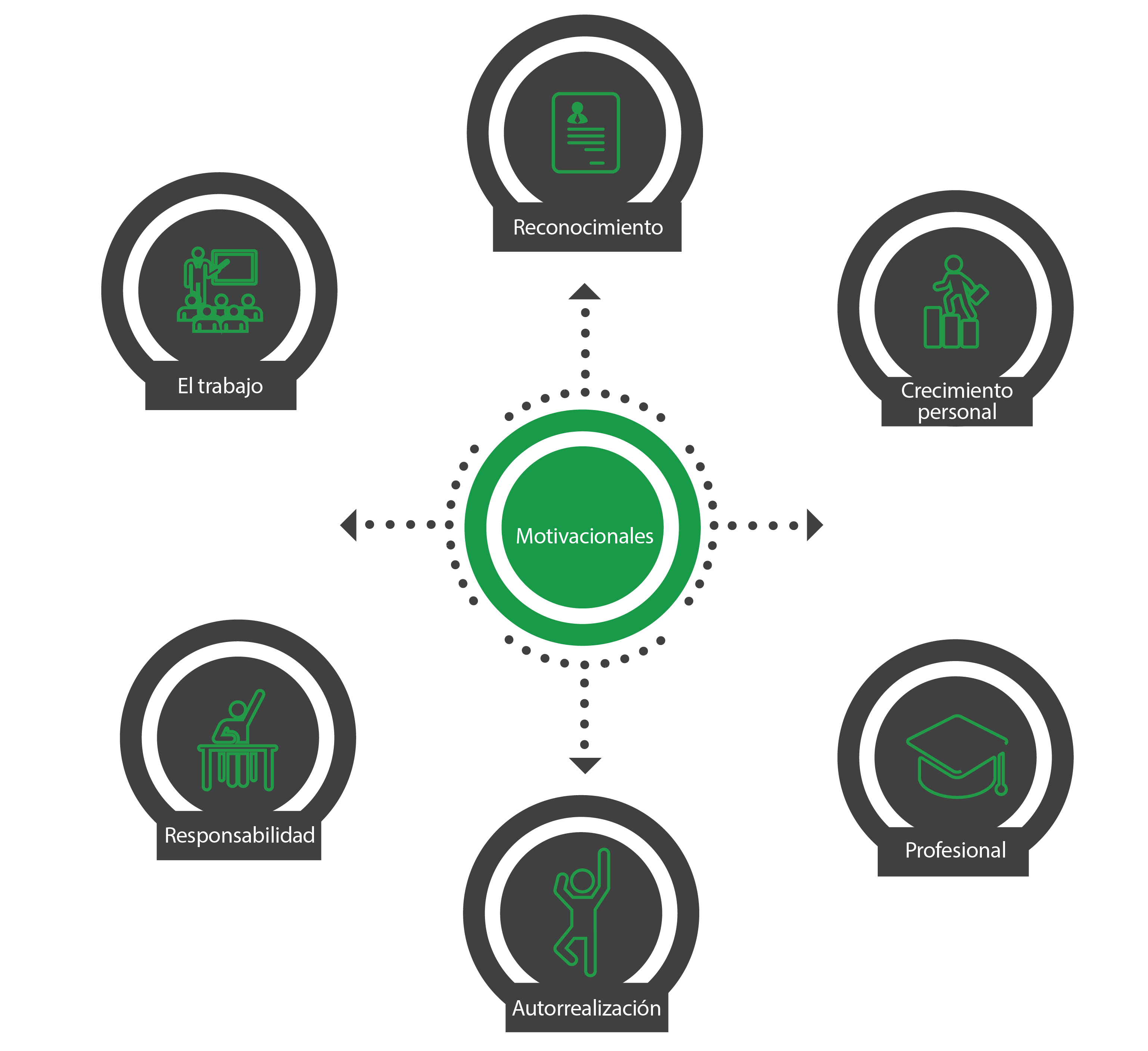 Están ligados directamente con el individuo, sus funciones, tareas y cargos. Cuando son óptimos, ocasionan satisfacción plena en el individuo. A diferencia de los higiénicos, si no están presentes, causan insatisfacción.