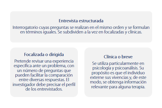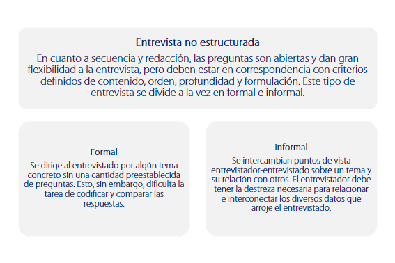 Por medio de la entrevista, se establece contacto inmediato con las personas. Tiene como ventajas su apertura y flexibilidad, y permite al entrevistador profundizar en determinados puntos de su interés. Se convierte así en el instrumento más empleado en la investigación de campo.