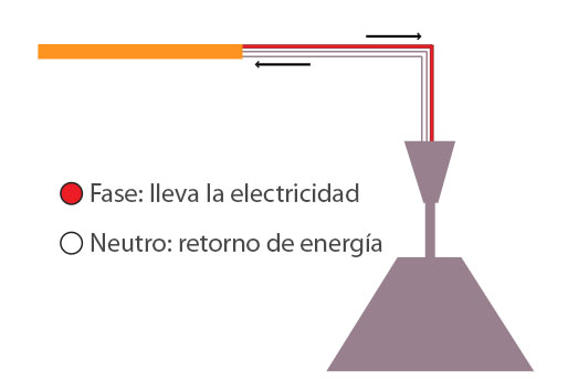Es aquél en el que circula la corriente eléctrica por un solo cable, llamado fase o cable vivo, y retorna la energía eléctrica al mecanismo de control por el cable neutro o cable muerto.