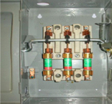 | Sección de metal laminado, colocado en la entrada del circuito a proteger para que, al aumentar la corriente eléctrica, debido a un cortocircuito, sea la sección de metal laminado la que se caliente más y, por ende, la primera en fundirse, de esta manera, se interrumpe la corriente por el circuito para evitar daños. Actualmente, la sección de metal laminado se coloca dentro de una caja metálica, llamada switch, que contiene cartuchos metálicos: debe colocarse un cartucho por fase para evitar la dispersión del material fundido; por tal motivo, también se denominan cartuchos fusible o casquillos. Los cartuchos fusibles son protecciones desechables: cuando alguno se funde se sustituye por otro en buen estado. |