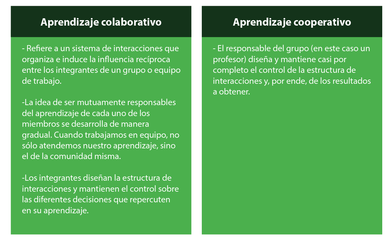 Respecto al aprendizaje, éste puede ser colaborativo y cooperativo.