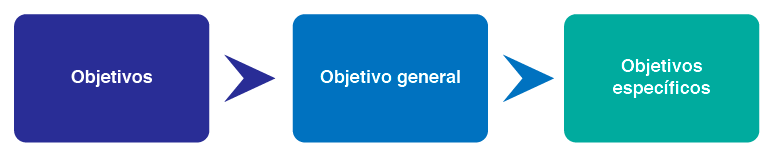 Se señala la meta o fin que persigue la investigación. Tiene correspondencia con las preguntas guía de la investigación. Los objetivos se redactan con verbos en infinitivo que se puedan evaluar, verificar, refutar, contrastar o evidenciar en un momento dado. Para la definición de objetivos se deben contestar las siguientes interrogantes: