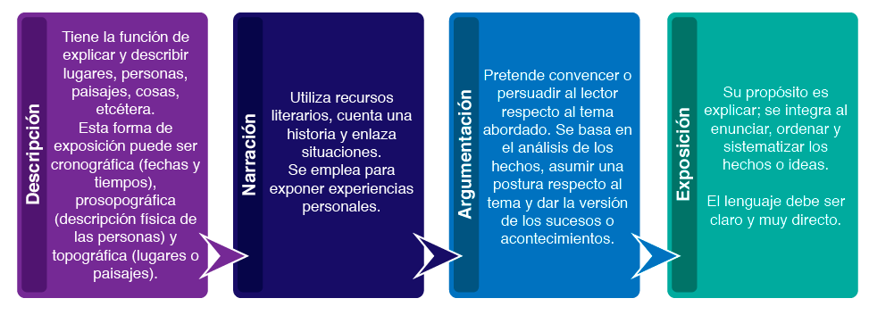 Al concluir tu trabajo, deberás exponer la investigación de manera escrita. Existen cuatro maneras de exponer tu investigación: descripción, narración, argumentación y exposición. Todas tienen que ver con cuatro cualidades básicas: claridad, sencillez, precisión y concisión.