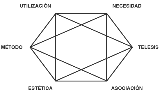 Cada elemento que se genera y une en forma de triángulo tiene una razón de ser; de esta manera, Papanek propone visualizar seis diagramas para comprender la relación de cada elemento: