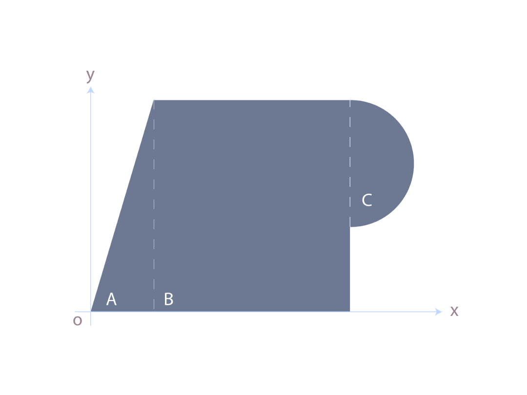 Las ecuaciones de la estática (∑F = 0; ∑M = 0) establecen, en principio, que, con la suma de áreas de las figuras, se realiza la ecuación en la que el área que equilibra, precisamente, será igual a dicha suma: