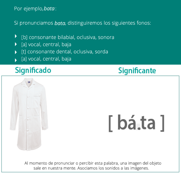 El hablante guarda en su mente una serie de sonidos no perceptibles y los elige para formar un signo lingüístico y denominar la realidad presente.
