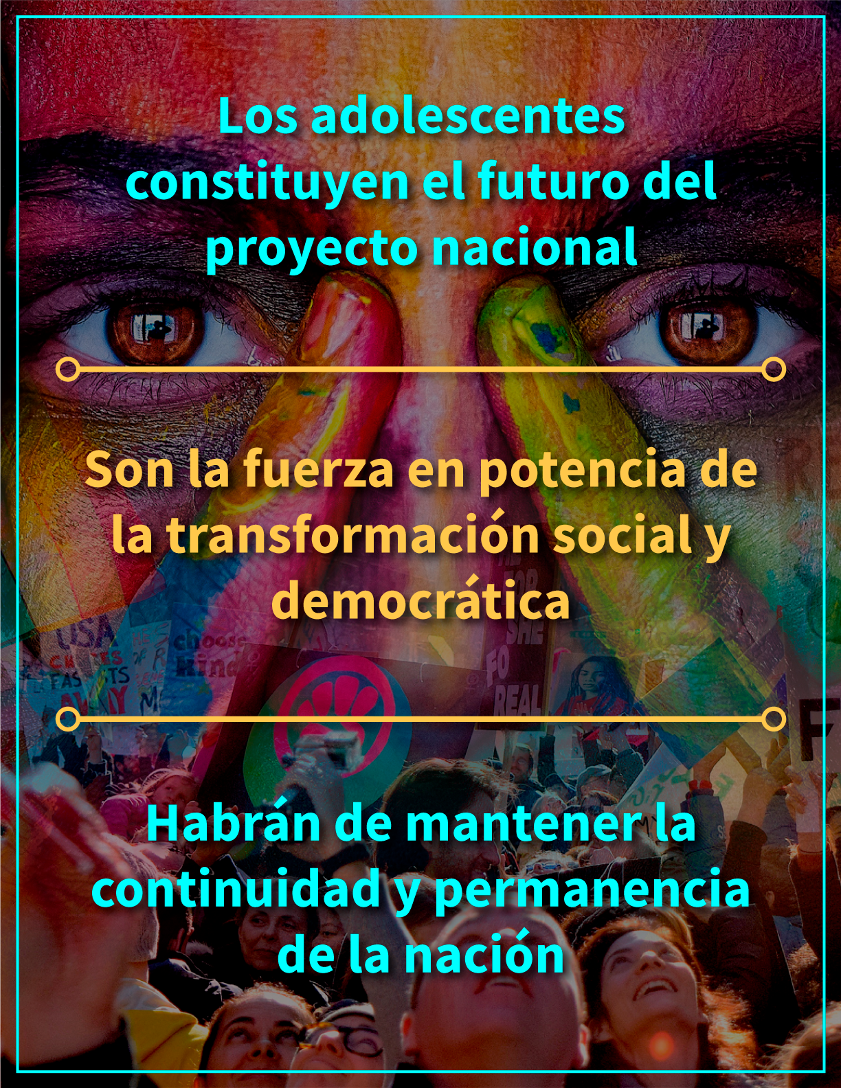El adolescente se encuentra en el centro de un proceso altamente complejo y difícil: sus características socioculturales están ligadas a los rápidos cambios biológicos y psicológicos de la persona y a la velocidad en que las culturas y las sociedades se transforman. Es importante mencionar que la sociedad actual impone la necesidad del joven de acoger los valores morales y éticos no sólo para garantizar la sociedad y su cultura, sino su crecimiento y desarrollo. En contraste, el mercado marca, en general, a la población en aras de la producción y el consumo. Por esta razón, la esperanza de una sociedad más justa y humana debe visualizar a los jóvenes con el potencial necesario.