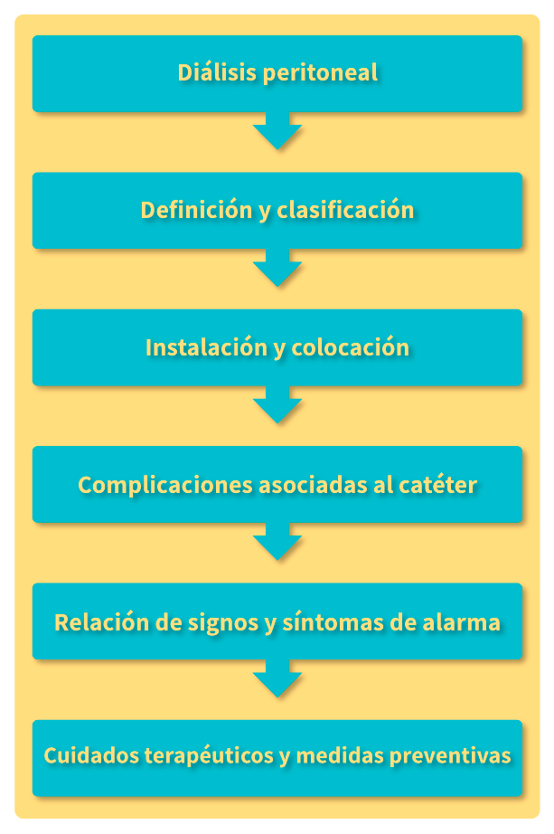 En esta unidad, abordarás la importancia del cuidado al catéter de diálisis peritoneal que se usa de manera permanente en personas con tratamiento sustitutivo de DP, afectadas por insuficiencia renal crónica (IRC), con el propósito fundamental de identificar las medidas preventivas, a partir de la manifestación clínica de los signos y síntomas de alarma, para la detección oportuna de las alteraciones o disfunción de éste; asimismo, se expone la clasificación más frecuente de catéteres, así como sus técnicas de colocación y ubicación.