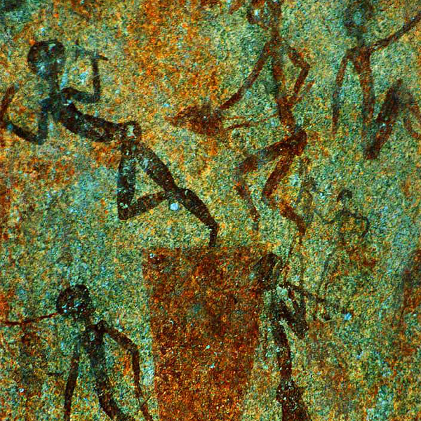 Evans, S. (2005). Bushmen Rock Painting [fotografía]. Tomada de https://www.flickr.com/photos/babasteve/5563393/. [Las pinturas rupestres de Zimbabue son de las más interesantes del continente africano; son una serie de figuras humanas, símbolos geométricos y representaciones de animales.]