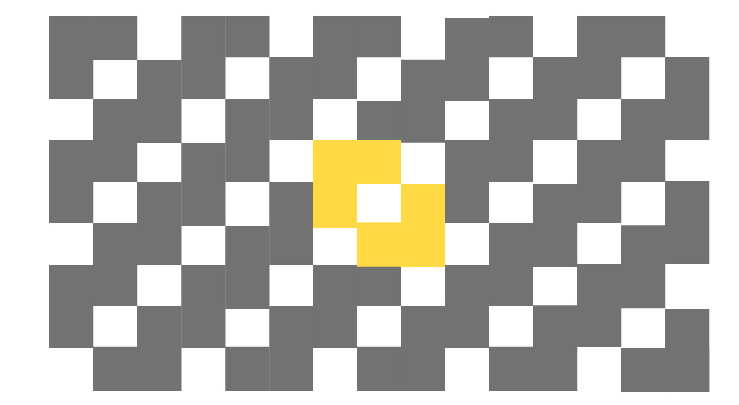 Observa cómo las formas más pequeñas iguales y en repetición llenan todo el espacio-formato.