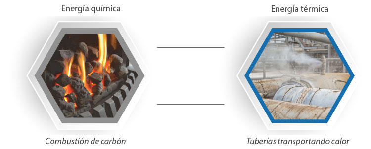 Ejemplo 1: Combustión de fuente fósil para crear fuego para crear calor.