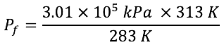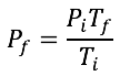 Para representar el cambio a partir de unas condiciones iniciales de presión y temperatura (Pi y Ti) a unas finales (Pf y Tf), se usa la siguiente fórmula matemática, la cual es una representación diferente de la ley de Gay-Lussac (Hein y Arena, 1997):