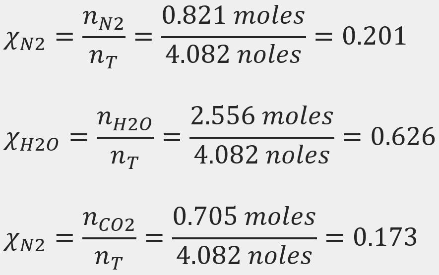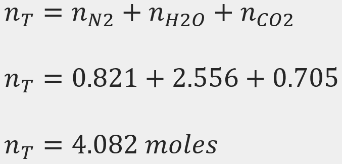 Si se hace la afirmación de que los moles totales son igual a la suma de los moles que componen la mezcla, de manera matemática, se expresa como: