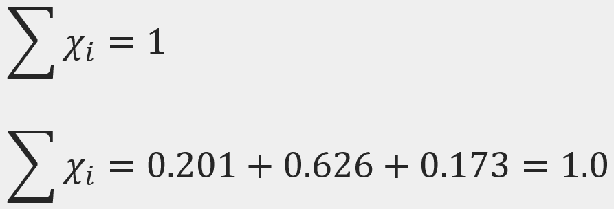 Al operar con mezclas, se hace uso de la fracción con que contribuye cada componente a la propiedad total de la mezcla. Estas contribuciones se expresan mediante la fracción molar Xi de cada componente i, la cual se define como indica la siguiente ecuación: