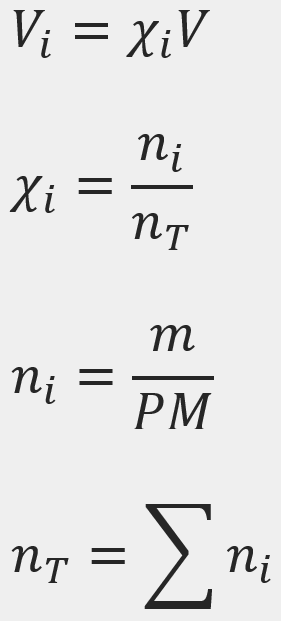 parciales. En este caso, es posible determinar el volumen que ocupa un gas en una mezcla de gases, así