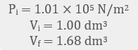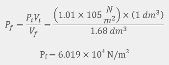 Un globo perfectamente elástico se llenó inicialmente con un gas ligero desde 1 dm3 hasta su volumen de explosión de 1.68 dm3, a nivel del mar. ¿Hasta qué presión atmosférica puede elevarse antes de explotar? Supóngase que no hay cambios en la temperatura y que la presión atmosférica a nivel del mar es 101 kP (Canales, Hernández, Meraz y Peñalosa, 1999).