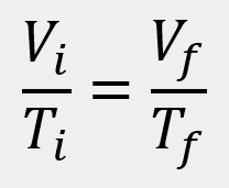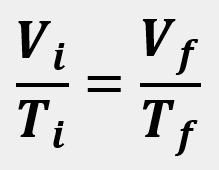 Matemáticamente, la relación anterior nos indica que el volumen de un gas varía de manera directa con la temperatura absoluta, cuando la presión permanece constante. Otra forma de expresar la ecuación de la ley de Charles es: