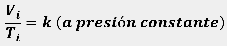 La expresión matemática de la ley de Charles se muestra a continuación: