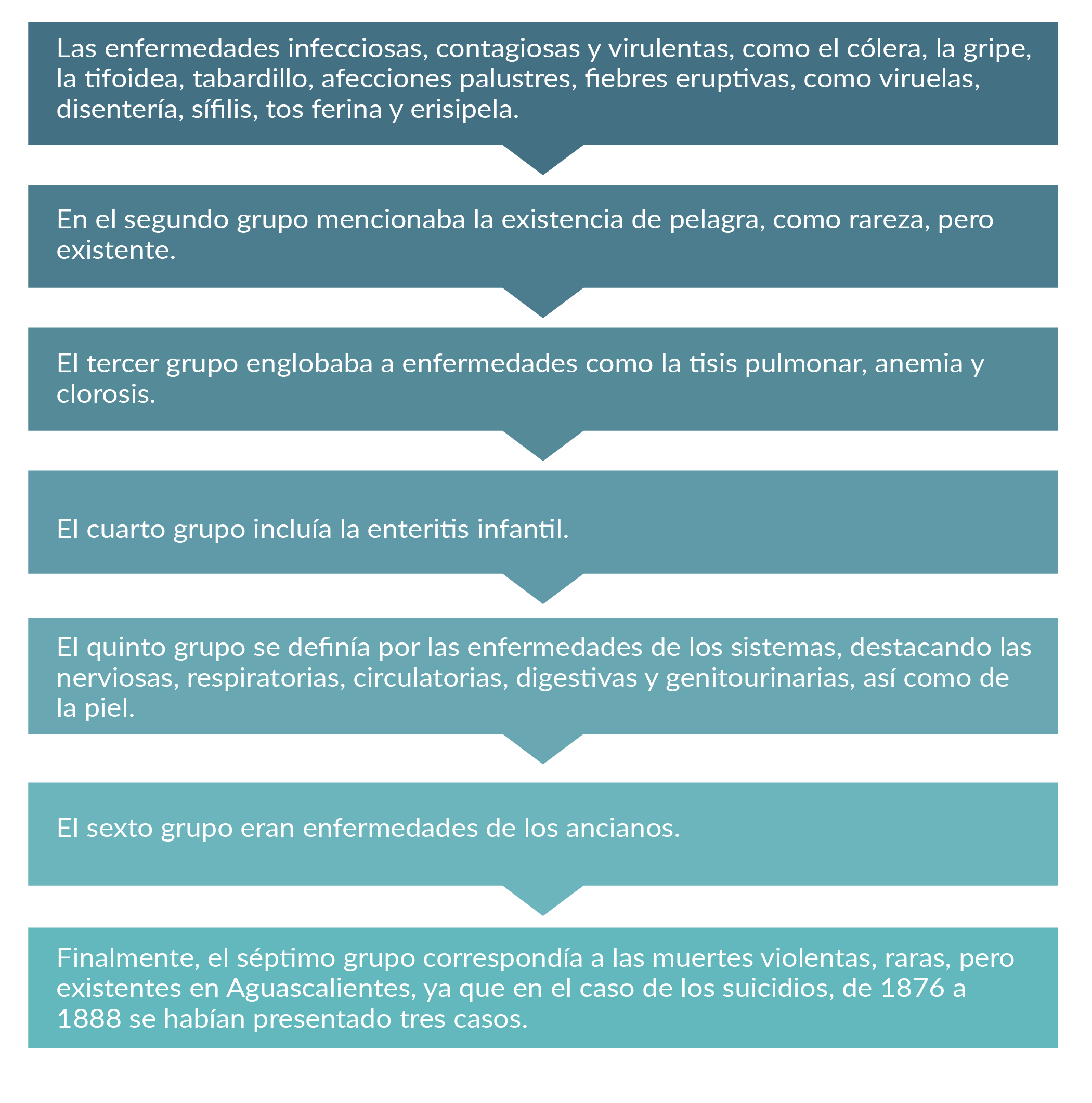 En términos generales, las enfermedades durante el siglo fueron una plaga difícil de combatir. A este respecto, por ejemplo, los doctores Jesús Díaz de León y Manuel Gómez Portugal, en una obra intitulada Apuntes para el estudio de la higiene de Aguascalientes, publicada en 1894, señalaban un conjunto de enfermedades que asolaban al país, por grupo se encontraban las siguientes: