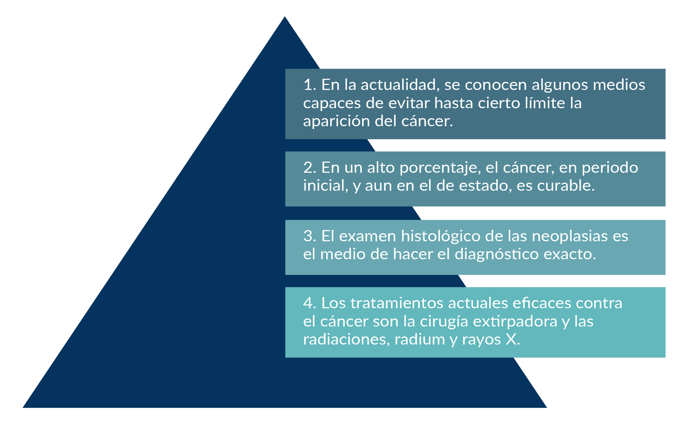 El Instituto de Nacional de Cancerología fue inaugurado el 25 de noviembre de 1946. Recordemos que, en el Hospital General, en 1922, se inauguró un Pabellón de Radium, especializado en cancerología; luego, en 1925 se creó una sección de cáncer en el Instituto de Higiene. En 1928 vio la luz la obra de Conrado Zuckermann, intitulada Los cánceres, en donde se propuso una estrategia para establecer una lucha contra el cáncer en México. El programa incluía difusión entre los médicos, propaganda entre el público y un proyecto para la creación de un instituto contra el cáncer. En 1929 se efectuó un censo de cancerosos en la república, contabilizándose, en 1936, 3454 defunciones por el mal, en una época en donde la población del país era de 16 552 722 habitantes, contando la ciudad de México con 1 229 576 habitantes. En agosto de 1933 se fundó la Revista Mexicana de Cirugía, Ginecología y Cáncer, y en 1936 el doctor Conrado Zuckermann Duarte presentó un plan de campaña anticancerosa al Departamento de Salubridad Pública, señalando que la lucha contra el cáncer era digna, pero no llenaba las necesidades del medio. Así, del 22 al 30 de noviembre de 1938 se llevó a cabo la Semana del Cáncer, a invitación de la Unión Internacional del Cáncer. En junio de 1941 se fundó la Oficina de Campaña contra el Cáncer, formada, entre otros, por Manuel Martínez Báez, iniciando la campaña con fines educativos dirigida a los médicos y a la población. Como medio de definición se diseñaron folletos y cursos y se planeó la creación de clínicas especializadas en la detección del cáncer, usando métodos de detección citológica del cáncer cérvico-uterino y clínica, y radiográfica del de mama. Señala el Dr. Carlos Viesca que los tratamientos quirúrgicos se ampliaron poco a poco en los centros especializados, como el Pabellón de Oncología del Hospital General y el área de hospitalización del Instituto Nacional de Cancerología, y más tarde, ya en los setenta, en el Hospital de Oncología del Centro Médico Nacional, del Instituto Mexicano del Seguro Social.