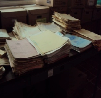 Documentos desorganizados [fotografía]. [Es importante la ordenación, porque de lo contrario se corre el riesgo de perder la información contenida en éstos y, con ello, la pérdida del conocimiento de las funciones del área productora.]
