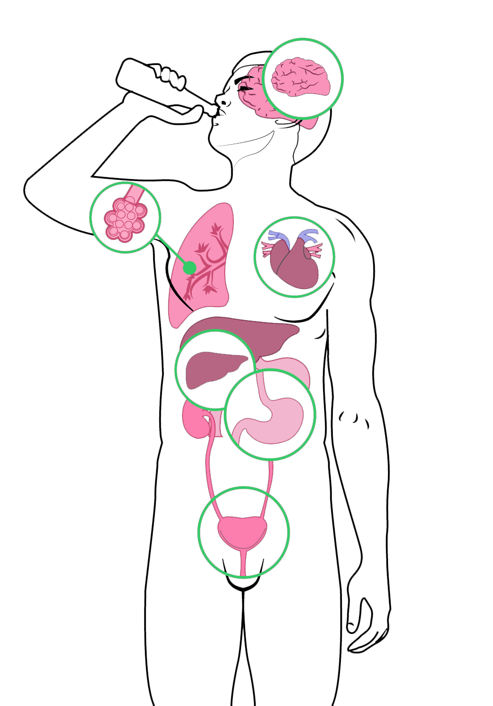 Como has leído hasta ahora, los efectos en el organismo asociados al consumo agudo y crónico del alcohol se presentan en variados y afectan a diversos aparatos como el digestivo, el circulatorio, el sistema inmunológico entre otros.