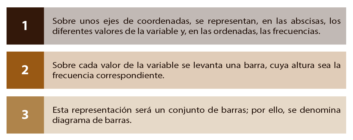 Se levanta, sobre cada valor o modalidad, una barra, cuya altura es su frecuencia acumulada.