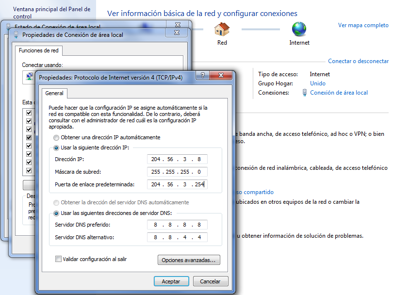 El direccionamiento estático lo hace por lo general el administrador de red en cada equipo; es decir, debe ir físicamente a donde está cada uno y configurarle una dirección IP, la máscara de red y la dirección del gateway; adicionalmente, si estará conectada a Internet, se le configurarían también las direcciones de servidor de nombre de dominio (DNS) primario y secundario. Se le llama estático porque cada equipo tendrá siempre la misma dirección IP asignada y no cambiará a menos que se modifique la configuración. El problema es que si la red tiene 200 equipos el administrador debe realizar esa configuración 200 veces, lo cual hace que sea una operación muy sensible a errores.