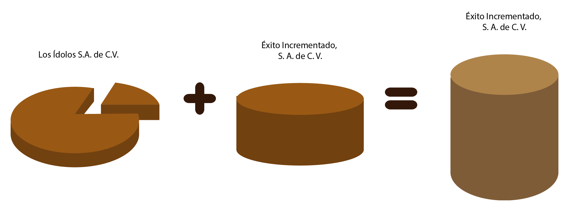 Ejemplo: Los Ídolos, S. A. de C. V. considera que aprovechará la experiencia de la empresa Éxito Incrementado, S. A. de C. V.; por lo tanto, decide ceder parte de sus activos pasivos y capital.