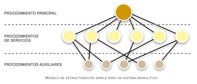De modo general, se puede resumir la estructura monolítica de la siguiente manera: