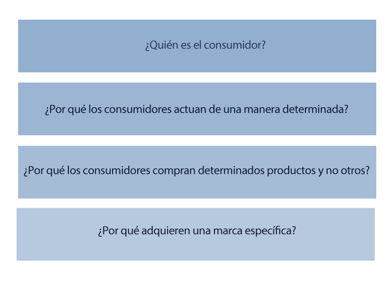El estudio del comportamiento del consumidor debe, primeramente, responder a las siguientes preguntas: