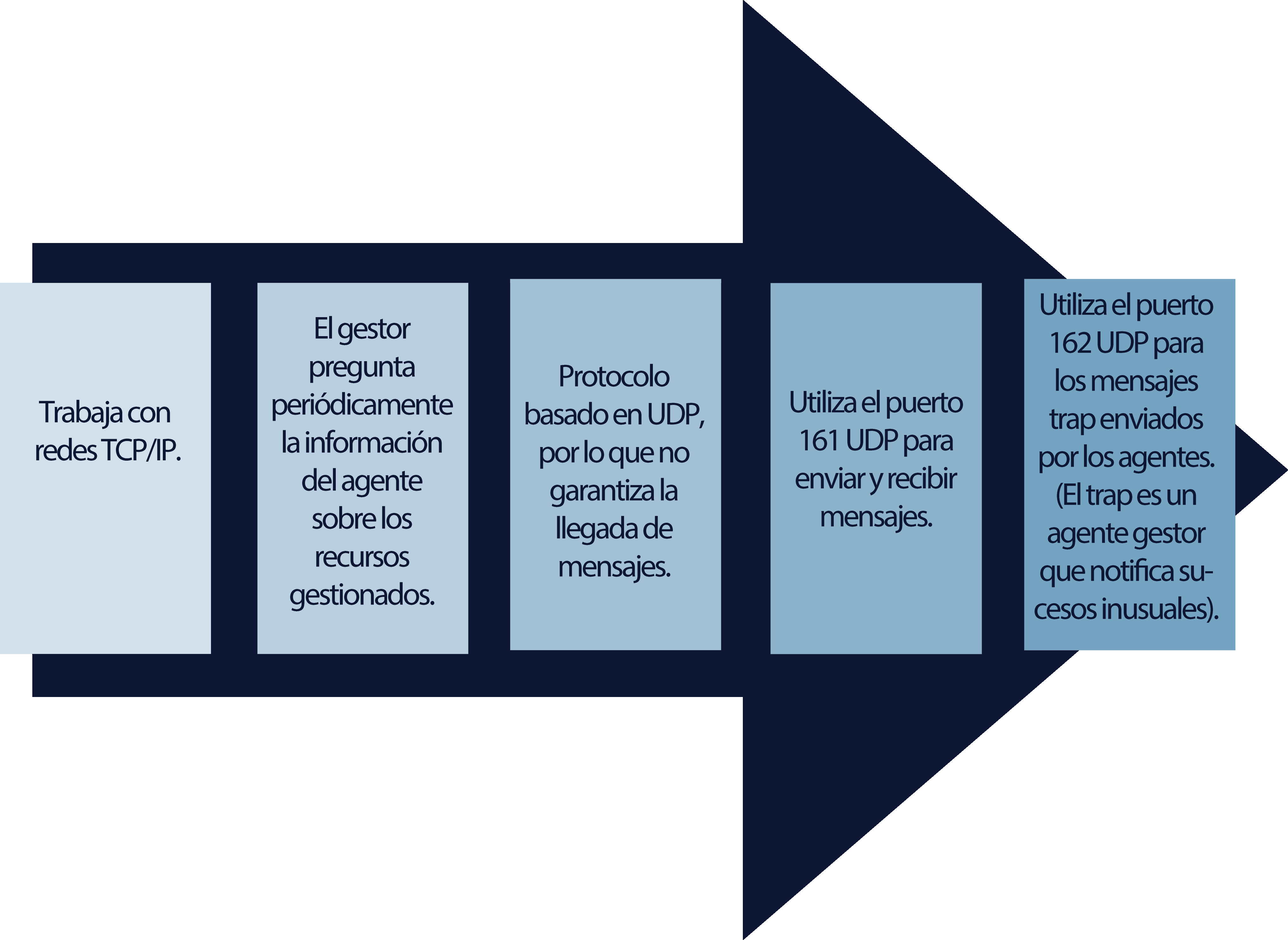 • Define una relación de igual a igual entre el gestor y el agente, incluyendo el establecimiento y cierre de la conexión.