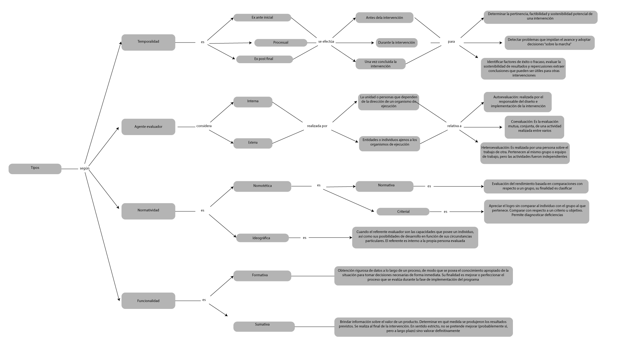 Como se vio en temas anteriores, la evaluación del Sistema Educativo Nacional requiere ser integral, participativa y técnicamente válida; por ello, es importante considerar diferentes tipos de evaluación (Organización para la Cooperación y el Desarrollo Económico, 2010):